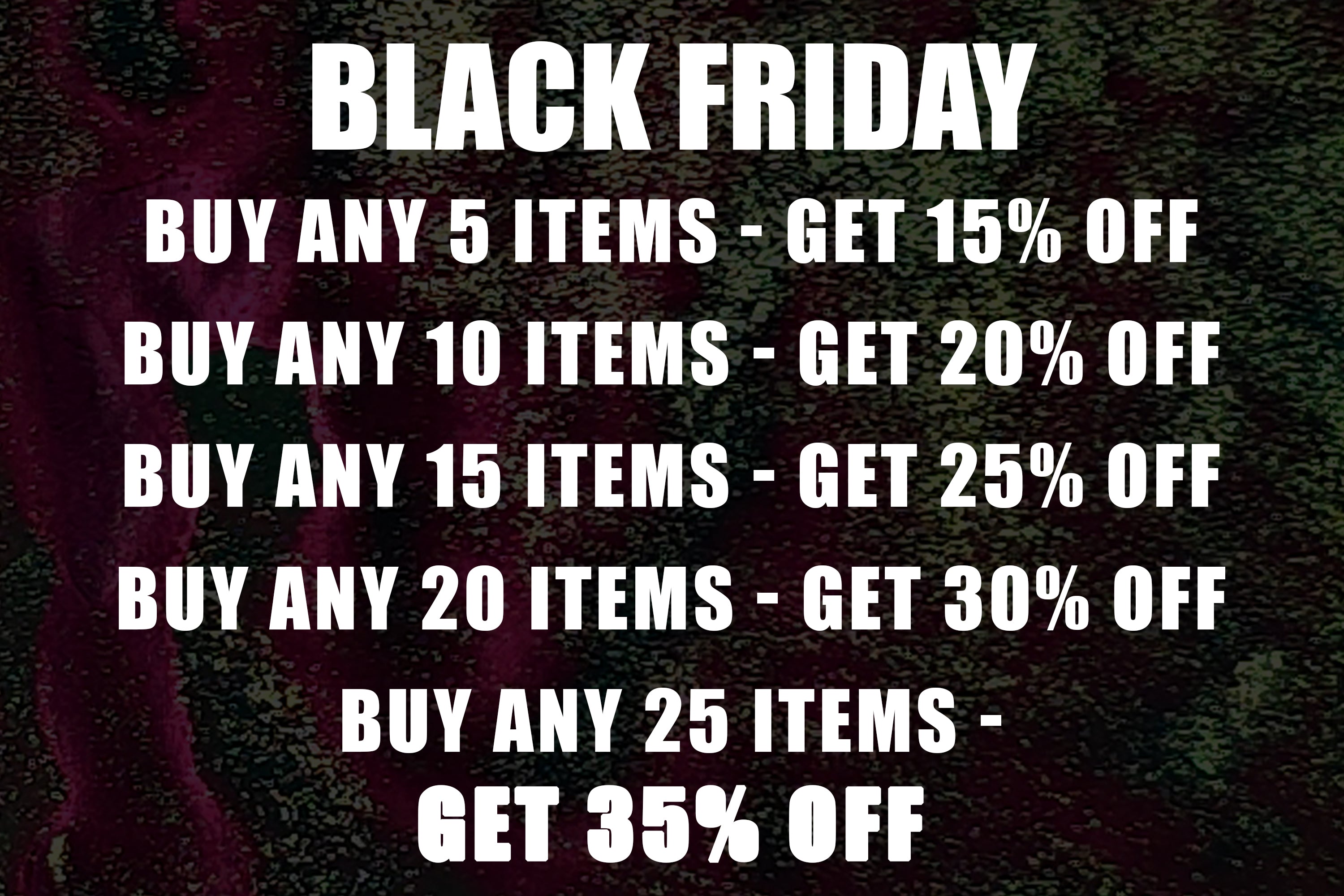 Buy any 25 items and get 35 percent off