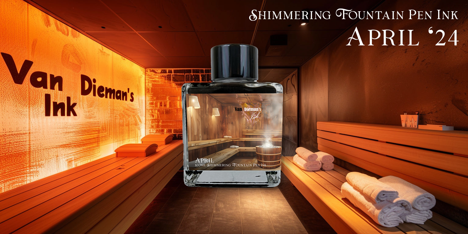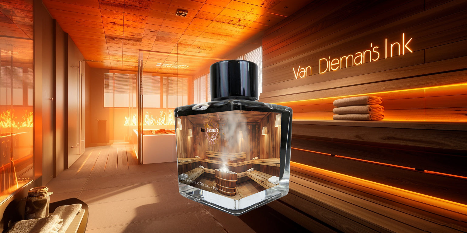For the true aficionados and collectors, a unique opportunity awaits. In a limited release of only 50 bottles, this April's ink transcends from mere writing fluid to a coveted treasure. Secure your own bottle of this exclusive sauna-inspired elixir without cost by embracing your passion for the art of writing. Simply choose any 10 bottles from our exquisite range of fountain pen inks before the end of April, and this rare ink, encapsulating the serenity and warmth of a traditional sauna in each drop, will be yours. Don't let this chance to own a piece of tranquility slip through your fingers; embrace this offer and let your writing flourish with the spirit of rejuvenation.