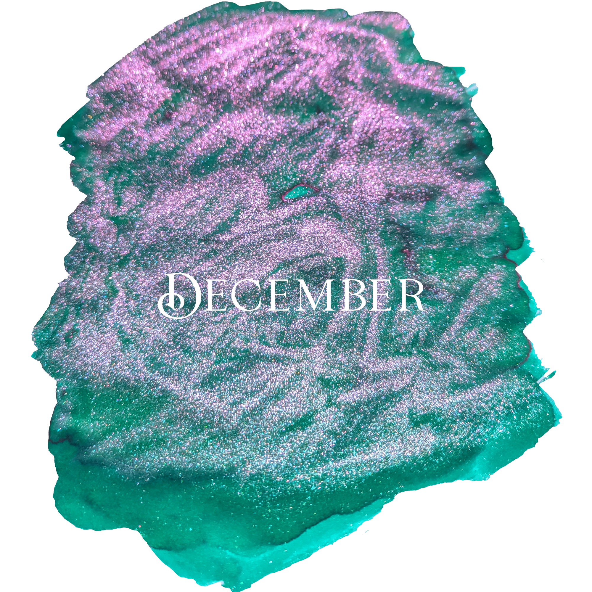 Van Dieman’s "December" ink captures this festive moment in a bottle. The ink flows like the deep, evergreen needles of the Christmas tree, rich and grounding. But just as the ornaments catch the light and shift from one hue to another, this ink transforms. Its shimmer dances between a cool bluey-green and a festive red, depending on the angle of the light, reminiscent of the glowing tree lights and the warmth of the holiday spread.