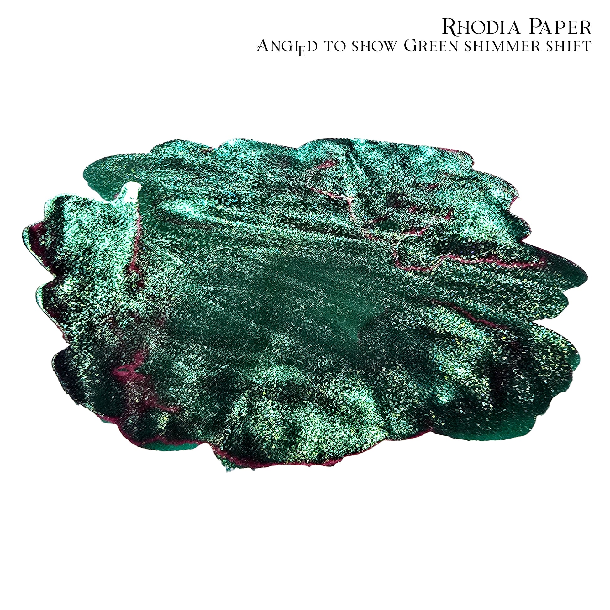Inspired by this iridescent wonder, Rainbow Scarab is a deep, vibrant green ink with a warm undertone and strong red sheen that shines vividly on high-quality paper. The multichromatic shimmer flows through gold, green, and blue tones, and in certain light reveals hints of rose pink that photographs can barely capture.