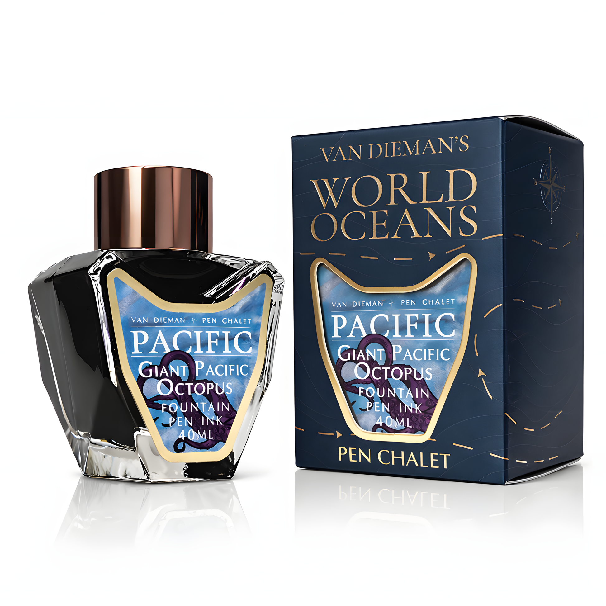 The World Oceans Collection is a year-long collaboration between Van Dieman’s Ink and Pen Chalet, celebrating the vastness, diversity, and quiet power of the world’s oceans. Each release explores a single ocean or sea through colour, movement, and light, expressed in carefully formulated fountain pen inks.